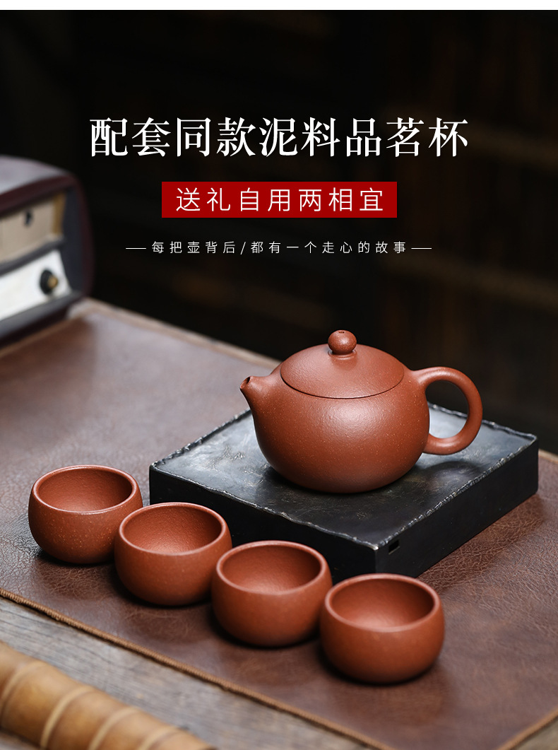 宜兴紫砂壶红降坡泥原矿手工茶壶家用功夫茶具一壶四杯套装批发