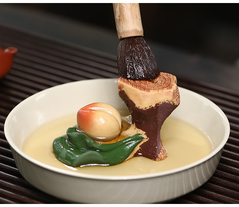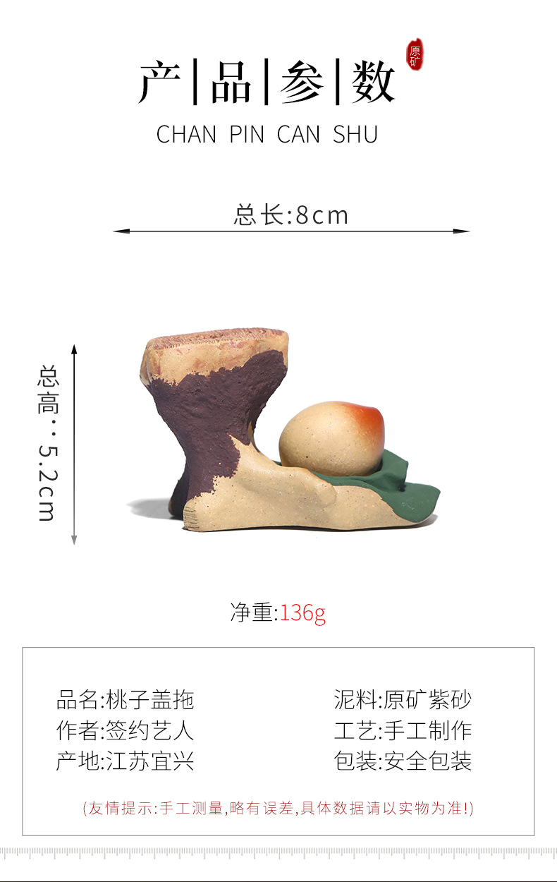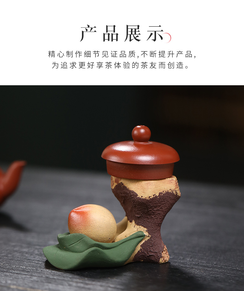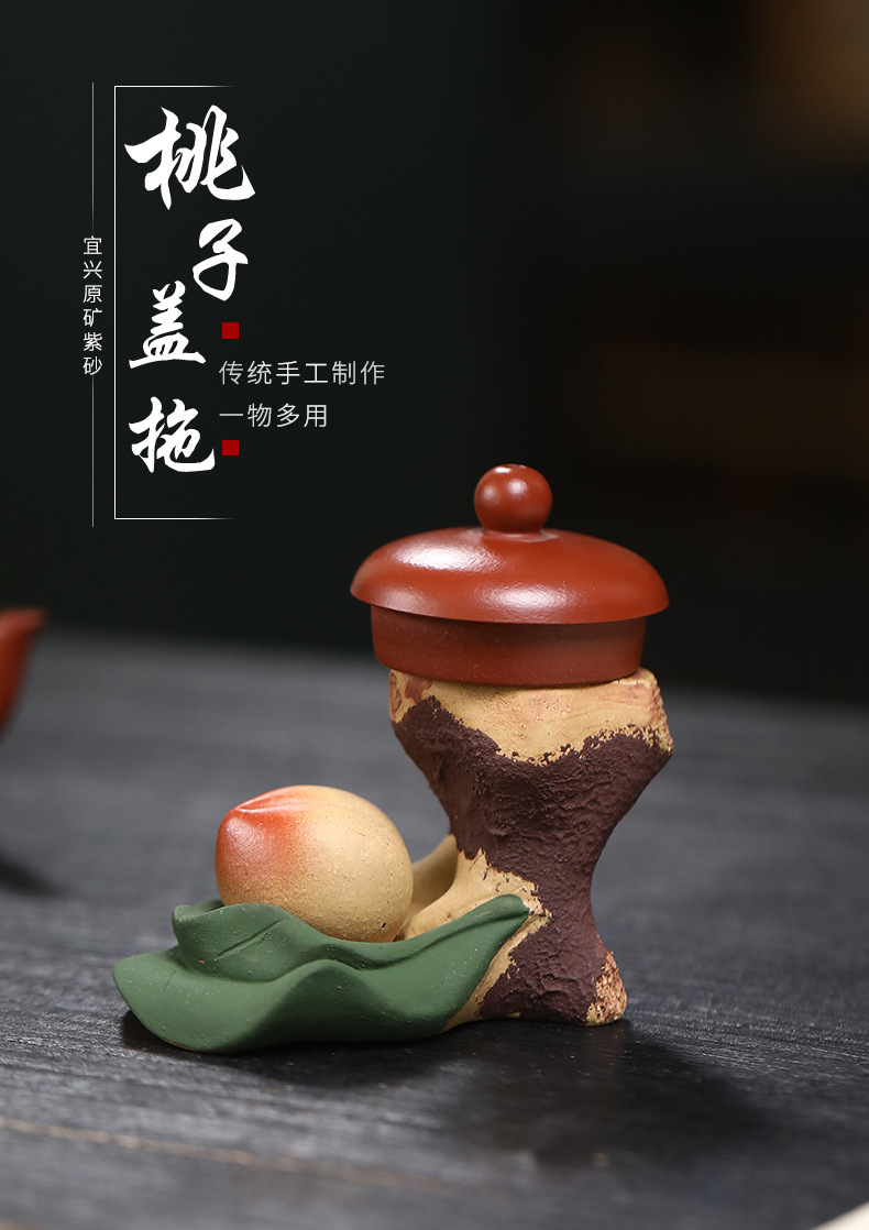 宜兴紫砂可养创意摆件盖托配件茶道紫砂茶宠段泥寿桃树桩盖置雕塑